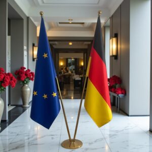 Drapeau Allemagne et EU avec pieds et mâts