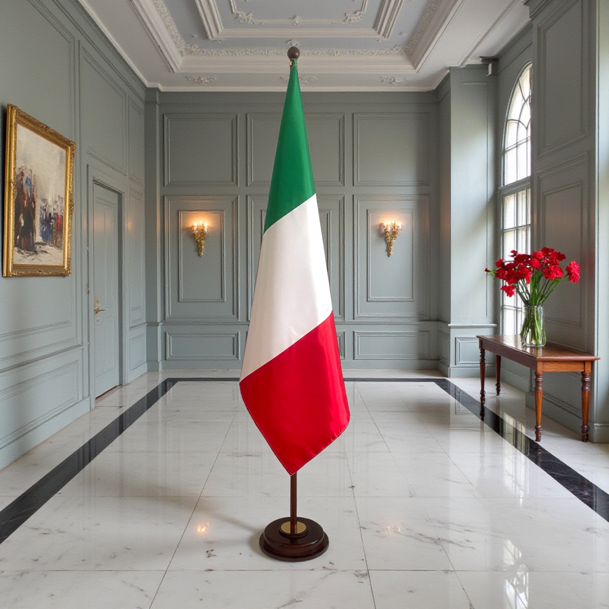 Drapeau Italie avec pied et mât