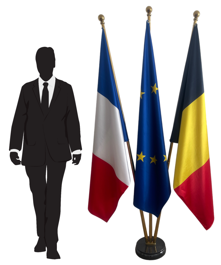 Pied en marbre noir avec 3 mâts en inox pour drapeau - Code MN15-B