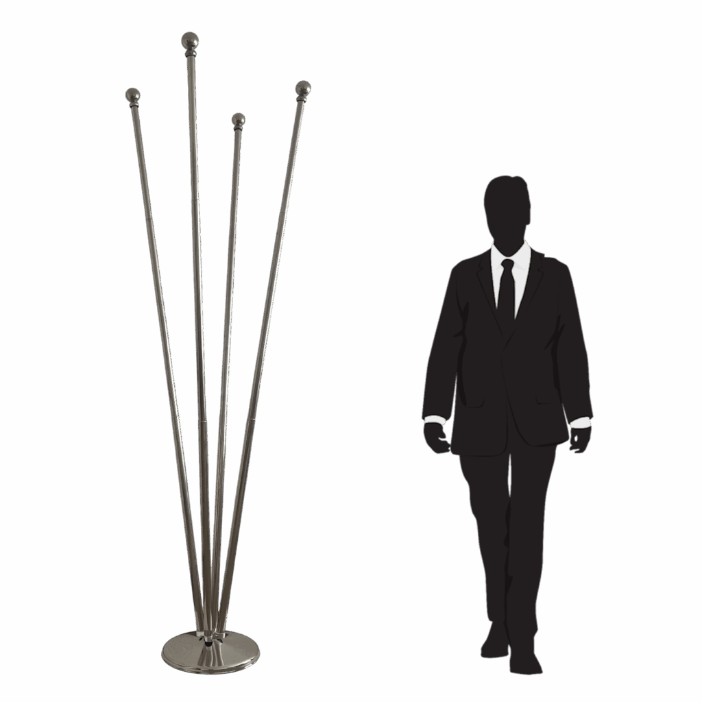 ✅ Pied avec 4 mâts pour drapeaux – acier inoxydable. SANS DRAPEAU !