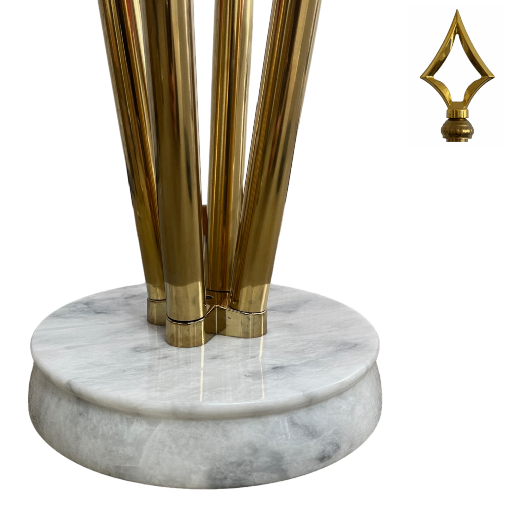 Socles en marbre blanc et mâts en inox, finition dorée