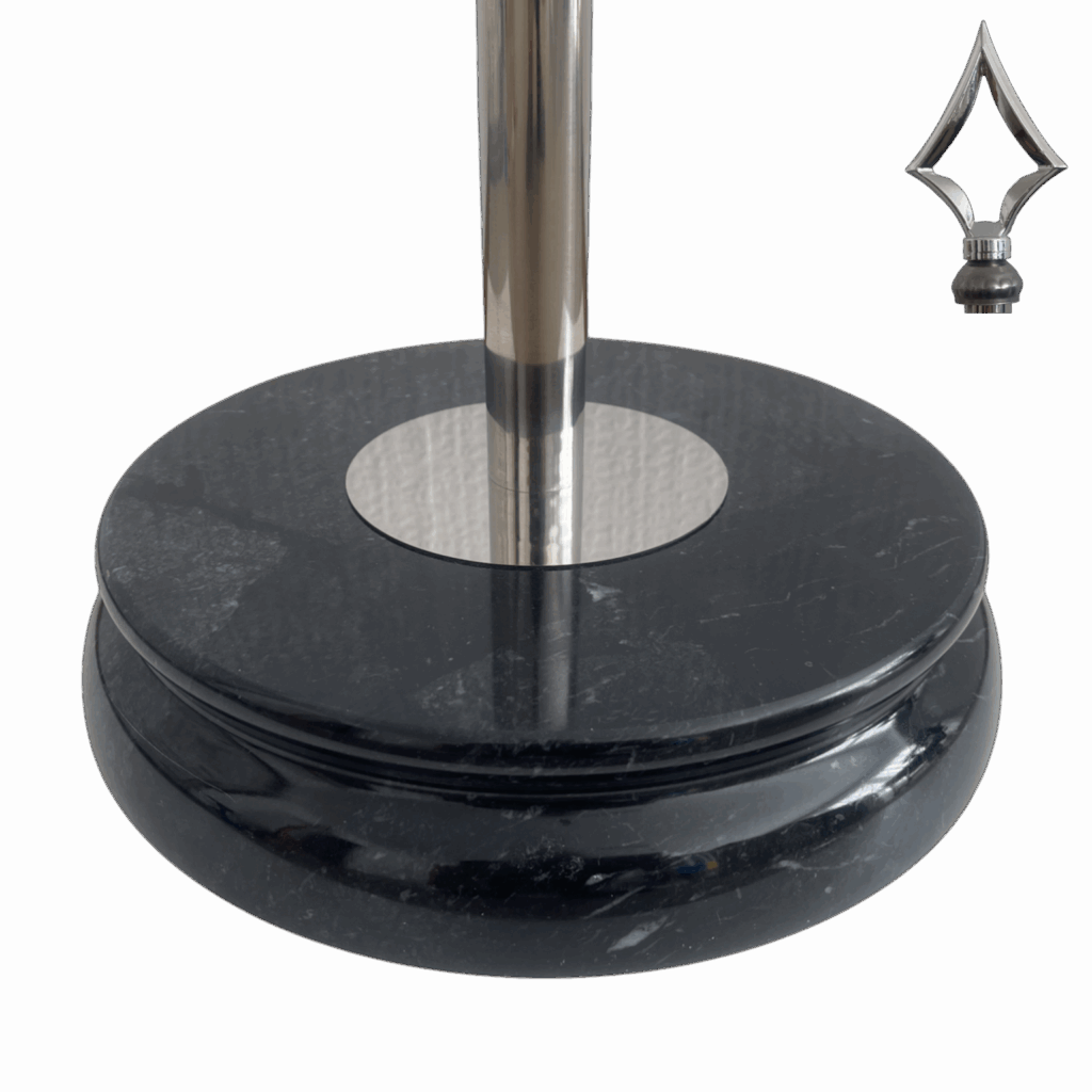 Socles en marbre noir avec mâts en inox, finition argentée