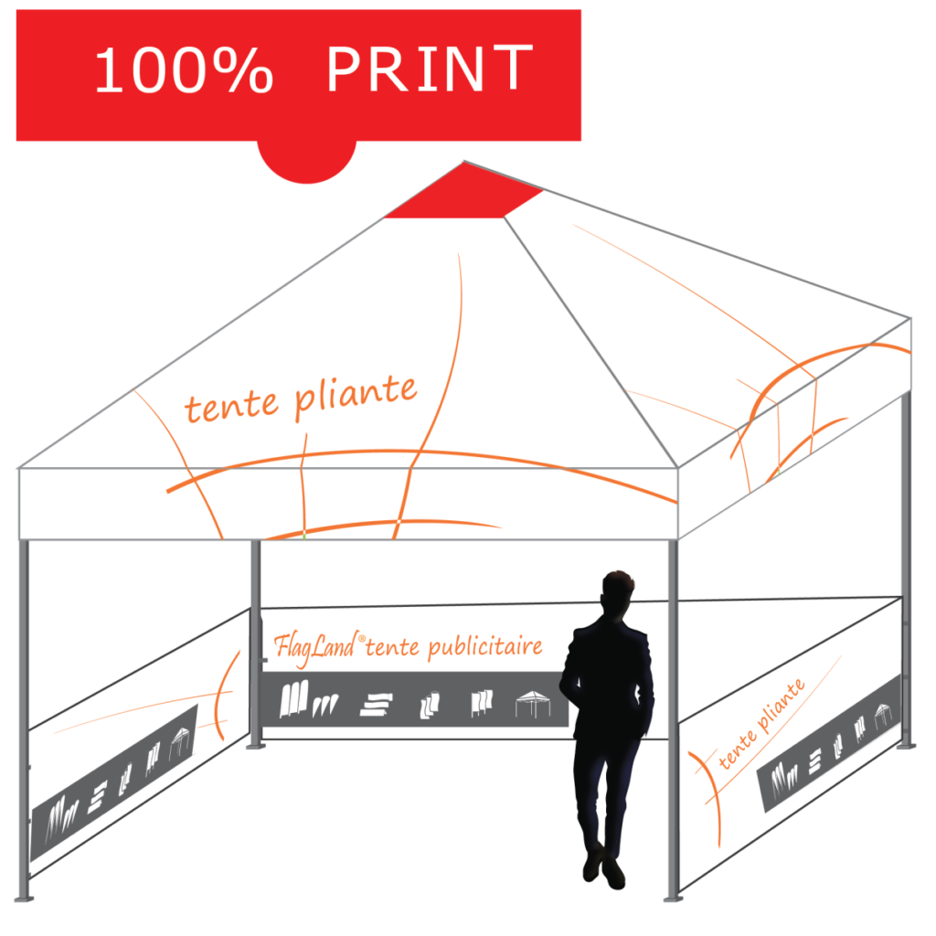 La bâche de toit est 100% personnalisable. Vous pouvez imprimer votre tente pliante publicitaire avec une logo, une photo ou un bout de texte.